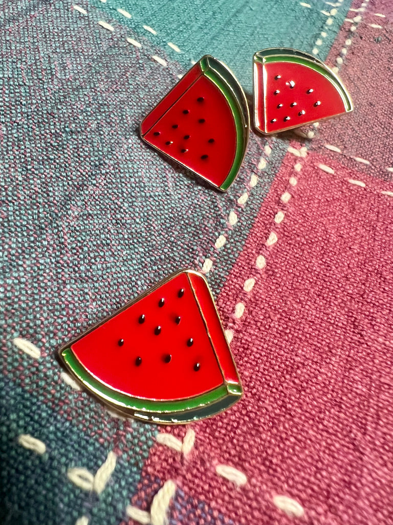 Enamel watermelon pins. For sale with love for Sana, her family and Palestine ❤️🍉