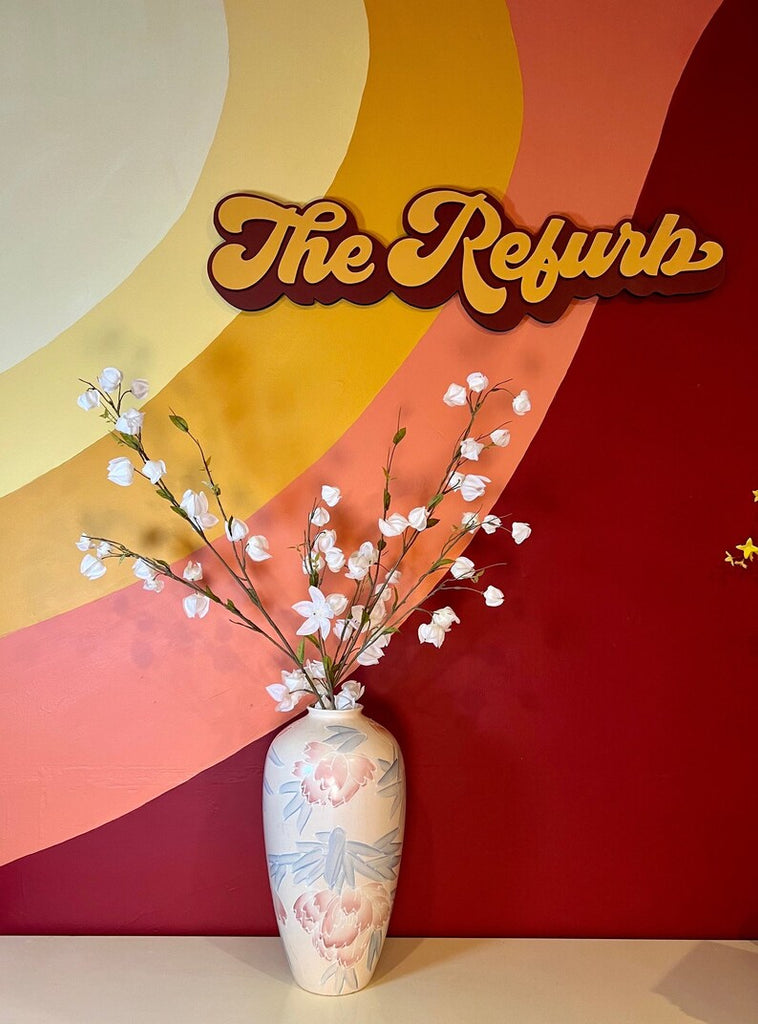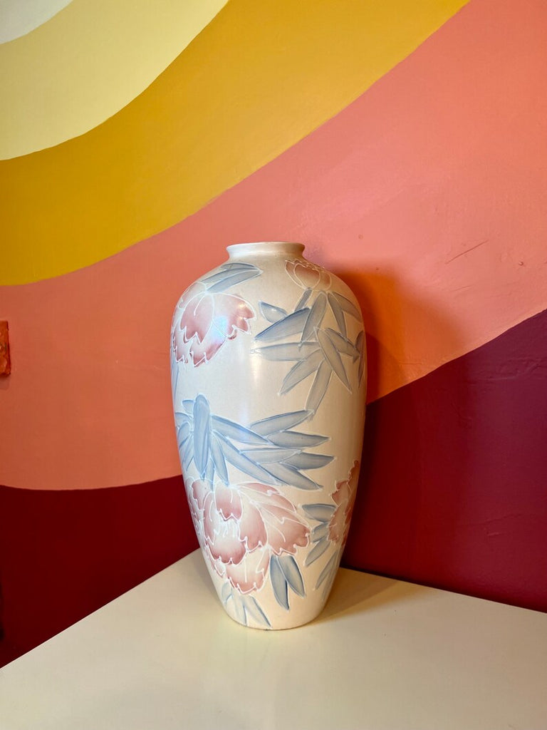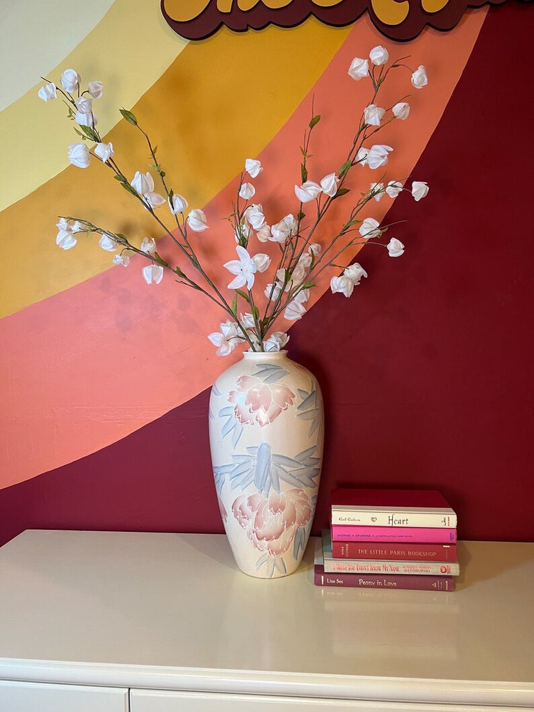 Ceramic vintage vase with a hand-painted floral design. Polished and cleaned, Refurbed by our team with ♡.